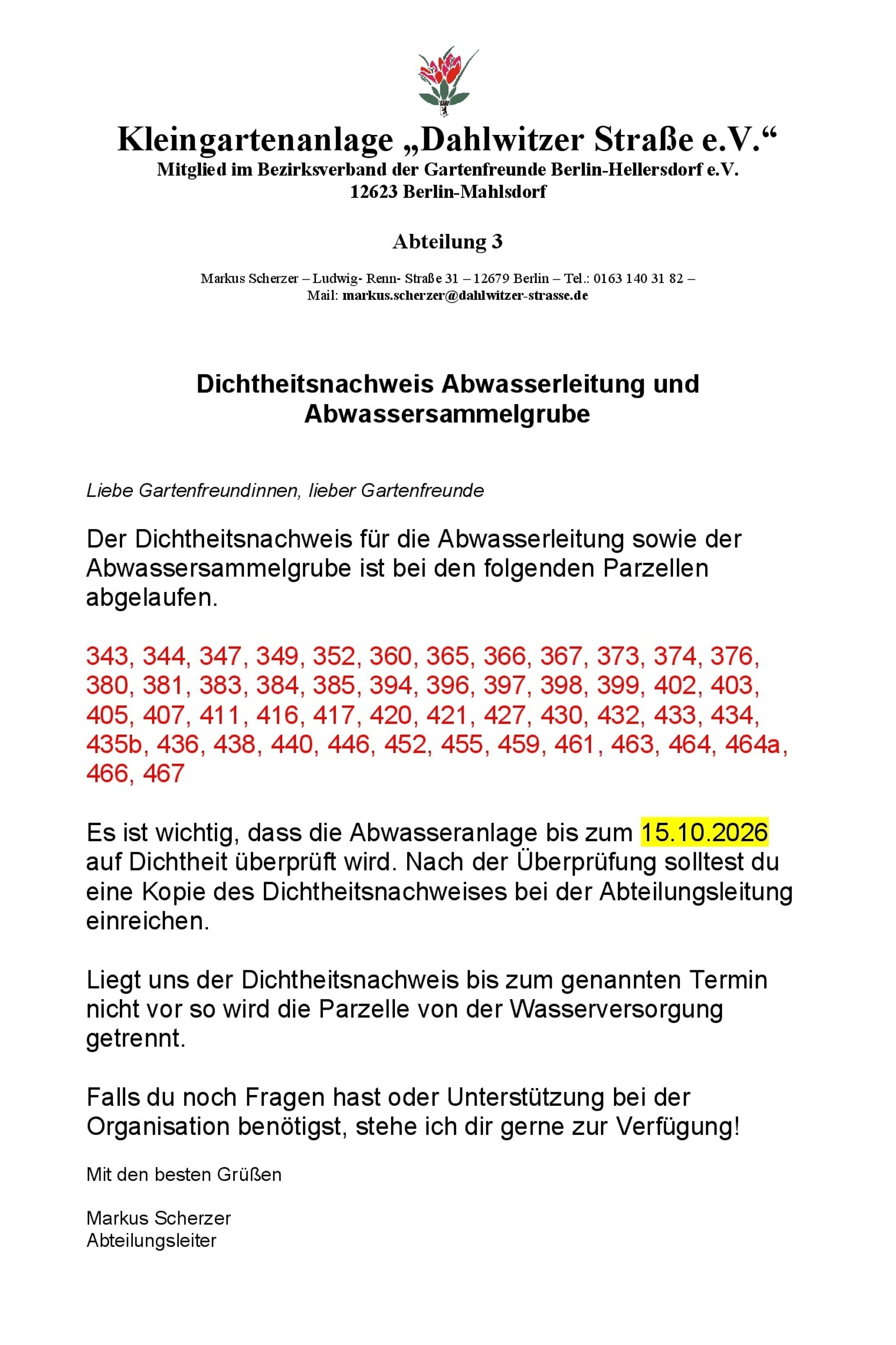 | Abteilungsleiter | Markus Scherzer Tel. 0163 1403182 eMail: markus.scherzer@dahlwitzer-strasse.de | Parzelle 371 |